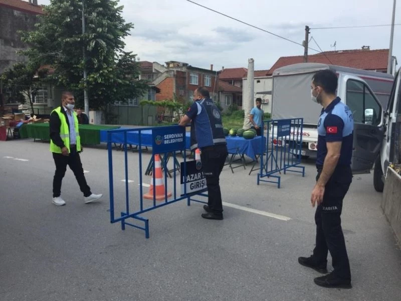 1 Haziran itibarıyla yeniden hizmete açılan restoran ve kafelerde sosyal mesafe, maske ve hijyen koşullarının sağlanıp sağlanmadığına yönelik bilgilendirme ve denetimler yapan ekipler bu kez Serdivan’daki pazaryerlerini denetledi. Normalleşme süreci kapsamında pazar esnafını bilgilendiren ekipler, alışverişe gelen vatandaşları da sosyal mesafe ve maske konusunda uyardı.