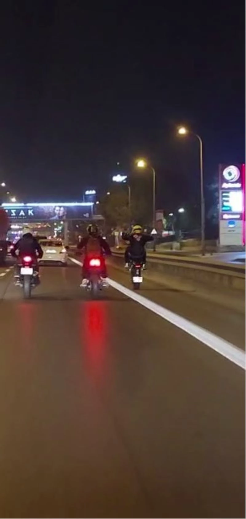 Pendik’te motosikletli 3 kişi makas atarak, ara sıra da tek teker üzerinde giderek trafiği tehlikeye soktu. O anlar başka bir sürücünün kamerasına yansıdı.