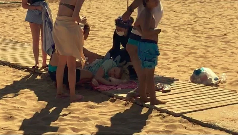 Plajda yürüyen genç kadın aşırı sıcaktan fenalaştı