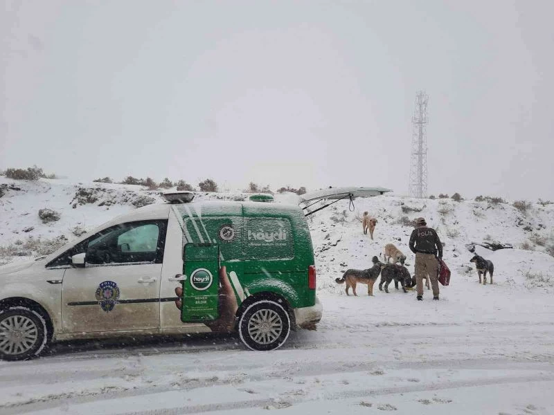 Polis ekipleri zorlu kış şartlarında sokak hayvanlarını unutmadı