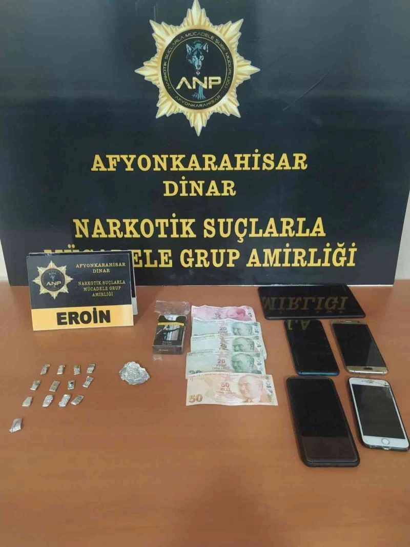 Olay, Başmakçı ilçe merkezinde meydana geldi. Edinilen bilgilere göre, ilçede uyuştucu satışı yapıldığı yönünde bilgi alan Dinar İlçe Emniyet Müdürlüğüne bağlı Narkotik Suçlarla Mücadele Grup Amirliği ve Başmakçı İlçe Emniyet Amirliği ekipleri operasyon yaptı. A.B., isimli şahsı gözaltına alan ekipler şahsın yaptıkları üst aramasında satışa hazır 13 paket halinde 1.88 gram eroin ve 120 TL para ele geçirdi. Şüpheli şahıs gözaltına alınırken, operasyonda ayrıca R.T. ve S.Y., isimli şahsa da uyuşturucu madde satın alma ve kullanma suçundan işlem yapıldı.