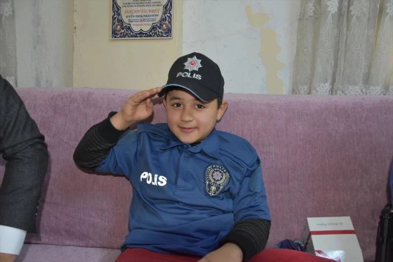 KAHARMANMARAŞ - Kahramanmaraş'ın Türkoğlu ilçesinde, polis olmayı hayal eden kas erimesi olarak bilinen Duchenne Muskuler Distrofi (DMD) hastası 10 yaşındaki Seydihan İmalı'yı, ilçe emniyet müdürü mutlu etti.