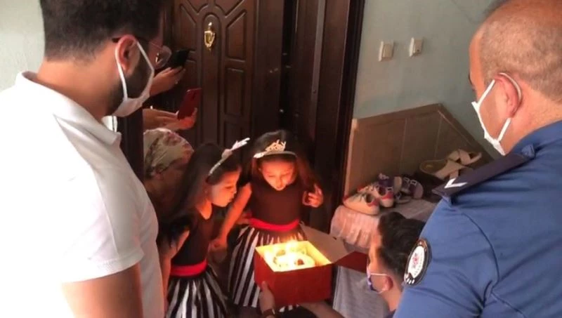 Merzifon’da yaşayan Miray ve Simay ikiz kardeşlerde, yeni tip korona virüs pandemisi nedeniyle polis korkusu oluştu. İkiz kızların dedesi Mevlüt Kendir torunlarının pandemi sürecinde oluşan polis korkusu nedeniyle Merzifon İlçe Emniyet Müdürlüğünden torunlarının doğum gününe katılmalarını talep etti. Mevlüt Kendir’in talebini geri çevirmeyen polisler, yaş pasta alarak ikizlere evlerinde doğum günü sürprizi yaptı. Polisleri pasta ile karşısında gören Miray ve Simay ikiz kardeşler korkularını yenmeyi başardı.