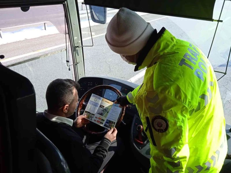 Van İl Emniyet Müdürlüğü ekipleri, otobüs şoförleri ve yolcuları mevsimsel şartlara karşı almaları gereken tedbirler konusunda bilgilendirerek, broşür dağıttı.