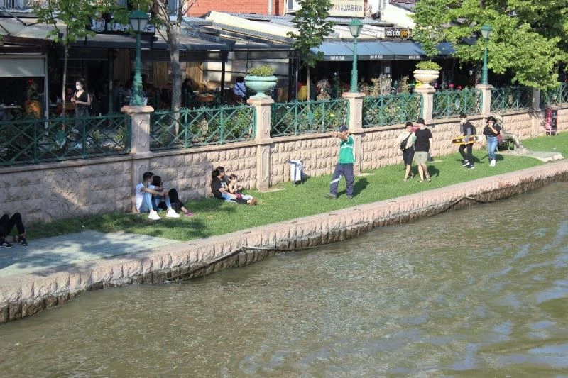 Eskişehir’de günlerdir aralıklarla devam eden yağışların ardından güneşin açmasıyla bilirlikte Porsuk kenarlarında güzel havanın tadını çıkarmak isteyen gençlerin keyfi, görevli tarafından yasak uyarısı ile sona erdi.