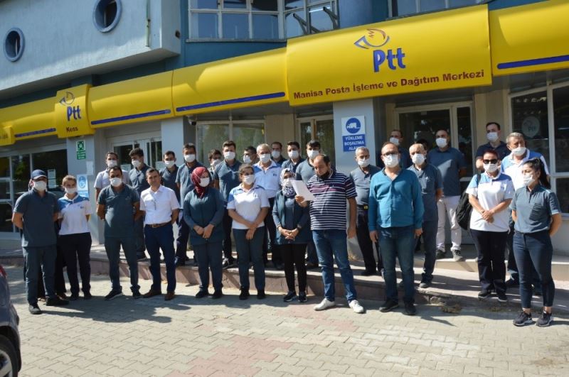 Türk Haber Sen Manisa İl Temsilciliği üyeleri Manisa PTT merkez binası önünde bir araya gelerek yaşanan olaya tepki gösterdi. Türk Haber Sen Manisa İl Temsilcisi Serkan Bezciler yaptığı açıklamada, “Yaşadığımız pandemi süreci de dahil olmak üzere en zor şartlarda görev yapan PTT çalışanlarının özveriyle çalışmaları malumunuzdur. Yoğun iş yükü ve personel eksiklerine rağmen yaşanan süreçte mesai saat gözetmeksizin hemşehrilerimizin ihtiyaçlarını en kısa sürede adreslerine teslim etmek için her arkadaşımız iki üç misli performans göstererek görevlerini yerine getirmiştir. Devletimizin ihtiyaç sahiplerine vermiş olduğu pandemi ödeneklerini, vefa destek grupları ile hak sahiplerine adreslerinde ödemiştir. Sokağa çıkma yasaklarında bile sağlık çalışanları, kolluk kuvvetleri, belediye ve PTT çalışanları vatandaşa kesintisiz hizmet vermek için fedakarca çalışmış ve çalışmaya devam etmektedir. Maalesef tek amacı halka hizmet olan çalışanlarımız zaman zaman saldırılara maruz kalmaktadırlar. 11.07.2020 Cumartesi günü dağıtım yapmak için görevi başındaki dağıtıcı meslektaşımız Fatma Ağırman gönderi götürdüğü bir evdeki çift tarafından hem sözlü hem fiili saldırıya maruz kalmıştır. Arkadaşımıza darp raporu verilmiş, karakola şikayetçi olmuştur. Görevi başındaki bir devlet memuruna aynı zamanda bir kadına yapılan saldırıyı şiddetle kınıyoruz. Bu kendini bilmez kişilerle hukuk önünde mücadelemiz başlatılmıştır. Türk Haber Sen olarak bu olayın takipçisi olacağız.” dedi.