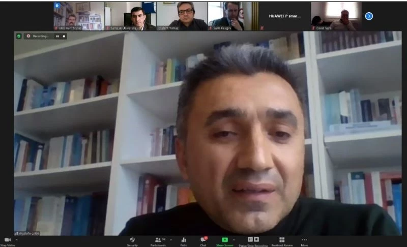 Çevrimiçi platform üzerinden düzenlenen konferans Dr. İbrahim Yılmaz moderatörlüğünde başladı. Konferansa konuk olarak katılan Samsun Üniversitesi (SAMÜ) Siyaset Bilimi ve Kamu Yönetimi Bölüm Başkanı Prof. Dr. Mustafa Çolak, konuşmasına bu imkanı kendilerine sunan SAMÜ Rektörü Prof. Dr. Mahmut Aydın ile İktisadi, İdari ve Sosyal Bilimler Fakültesi Dekanı Prof. Dr. Kenan Çağan’a teşekkür ederek başladı. Ardından 2021 yılının İstiklal Marşı’nın Kabulü ’nün 100. yılı olması vesilesiyle bu senenin Mehmet Akif Ersoy yılı olarak kabul edildiğine dikkat çekti.