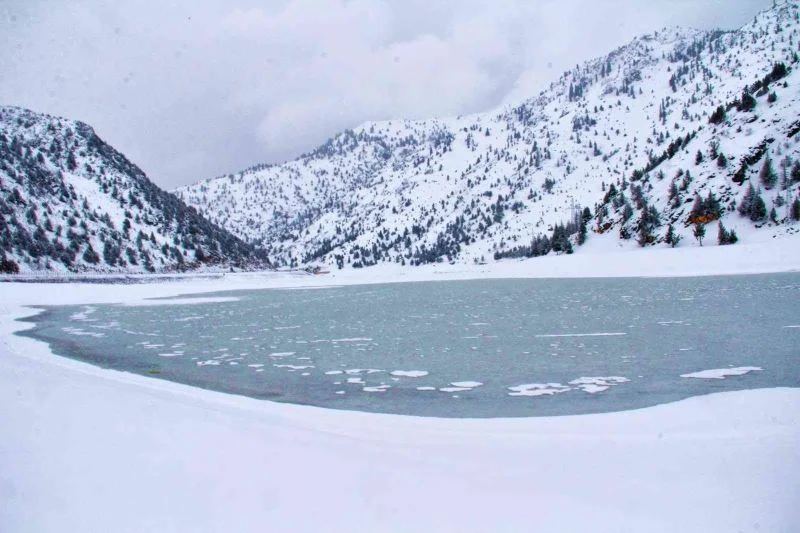 Kahramanmaraş’ın Göksun ilçesinde bulunan Püren Göleti buz tuttu.