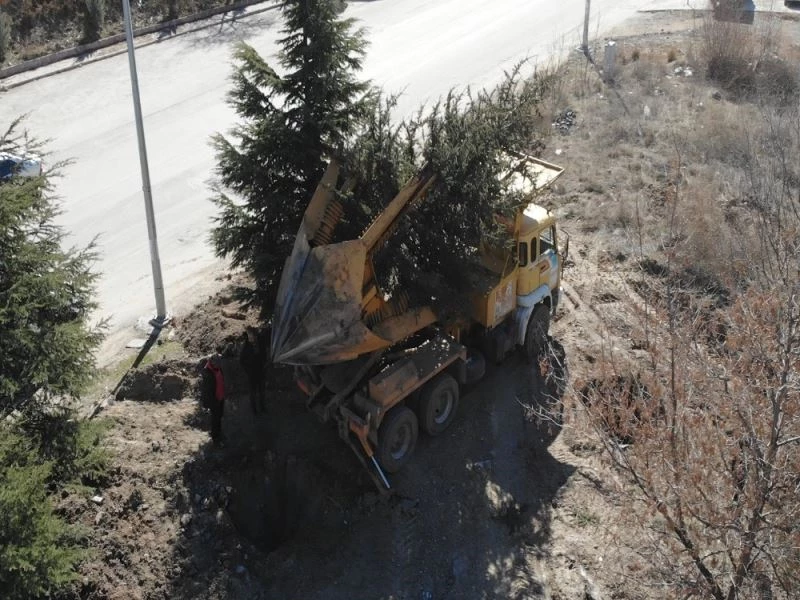 Pursaklar Belediyesi sökülen ağaçları yeni yerlerine taşıyor