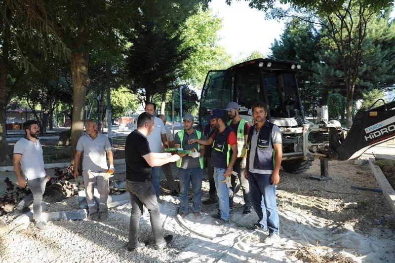 Zamanla eskimiş parkları modern ve estetik görünümüne kazandırarak daha kullanışlı hale getirmeyi hedeflediklerini ifade eden Belediye Başkanı Ertuğrul Çetin, Saray Mahallesinde bulunan Atatürk Parkındaki çalışmaları yerinde takip ederek personellere tatlı ikramında bulundu.