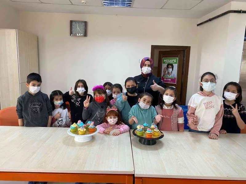 Pursaklar Belediyesi Hanım Evlerinde sömestr etkinlikleri kapsamında 8-12 yaş grubu çocuklar gazete kağıdından çerçeve ve cupcake yaptı.