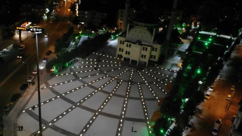 Dış mekânda kullanıma uygun 4 çeşit taşın kullanıldığı Hicret Cami Meydanı’nda havanın kararması ile birlikte faaliyete geçen gömme aydınlatma armatürlerin oluşturduğu görsel şölen seyir zevki verirken, yeni meydanın resmi törenlere ev sahipliği yapması, dinlenme alanları ve vatandaşların rahatlıkla dolaşıp vakit geçirebileceği yeşil alanlar bulunuyor.