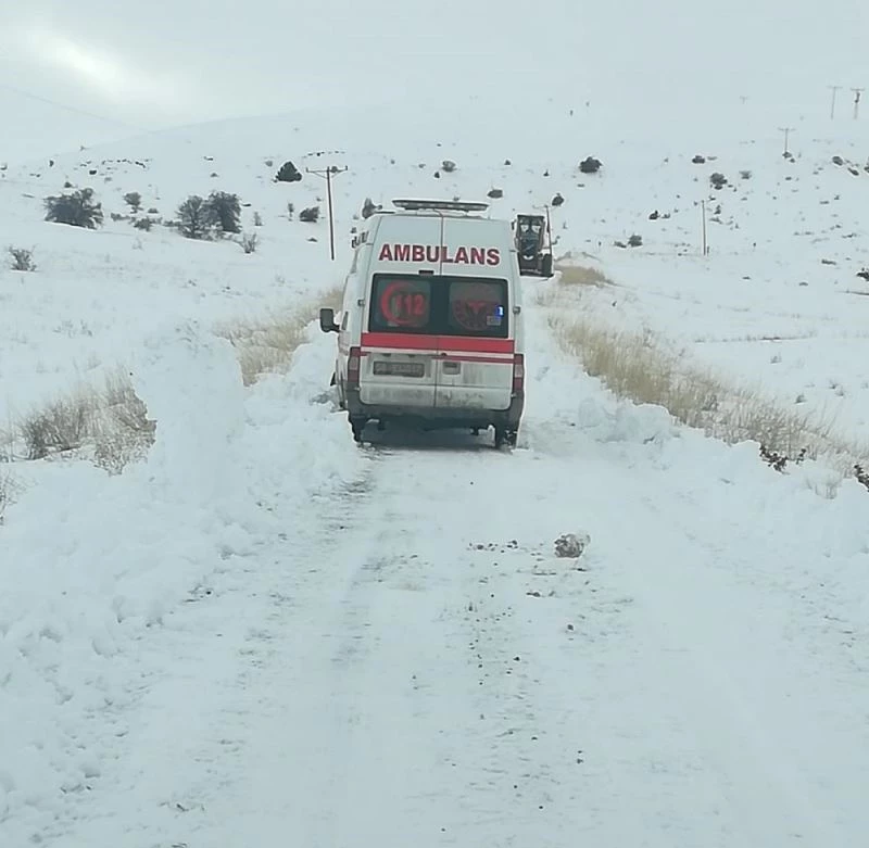 Rahatsızlanan vatandaş, karla kaplı yolun açılmasıyla hastaneye ulaştırıldı