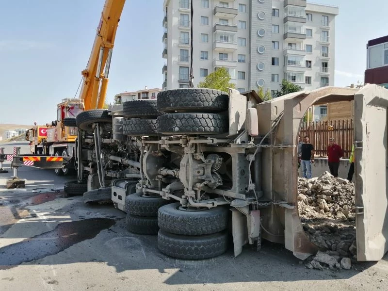 Rampa aşağı giderken devrilen hafriyat kamyonu 2 aracı biçti