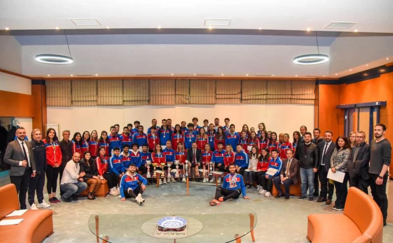 Muğla Sıtkı Koçman Üniversitesi (MSKÜ) Rektörü Prof. Dr. Hüseyin Çiçek, Sıtkı Koçman Özel Salonu’nda yıl boyu pek çok şampiyonada ve turnuvada derece elde eden MSKÜ Spor Bilimleri Fakültesi öğrencileri ve öğretim elemanlarıyla bir araya geldi.