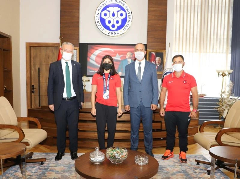 Erzincan’ın Üzümlü ilçesinde yaşayan Ahıska Türklerinden Milli güreşçi Elvira Kamaloğlu Rusya’da düzenlenen 2021 Dünya Gençler Güreş Şampiyonası’nda kadınlarda 57 kiloda Dünya 3’üncüsü oldu. Rektör Levent, Dünya Gençler Güreş Şampiyonası’nda bronz madalya kazanan ve aynı zamanda EBYÜ öğrencisi olan Elvira Kamaloğlu’nu ağırladı.