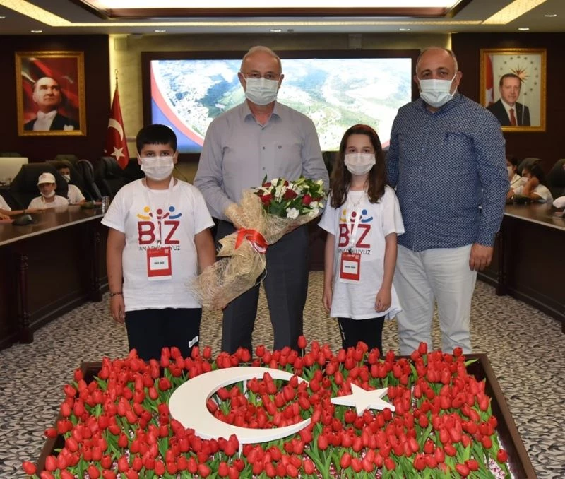 Görüşme öğrencilerin Rektör Prof. Dr. Yavuz Ünal’a plaket ve çiçek takdimi ile sona erdi.
