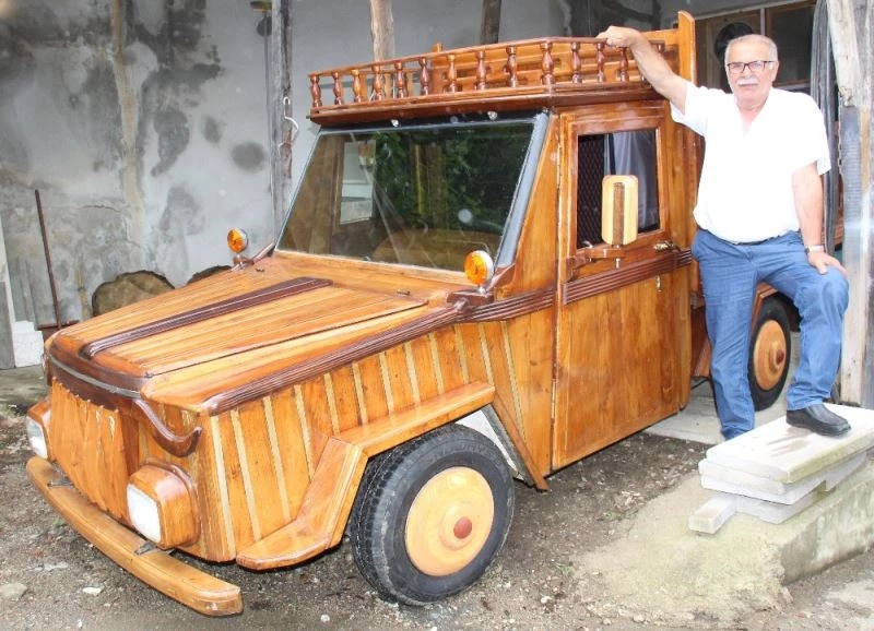 Rizeli mobilya ustası kendisine ahşaptan araba yaptı
