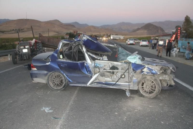Elazığ’da römorka arkadan çarpan otomobil hurdaya döndü, kazada 1 kişi ağır yalandı.