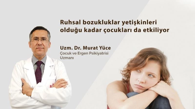 Çocuk ve Ergen Psikiyatrisi Uzmanı Doç. Dr. Murat Yüce, "Ruh sağlığı kişinin duygusal ve sosyal anlamda sağlıklı olmasıdır. Ruhsal bozukluklar yetişkin insanları olduğu kadar çocukların da günlük yaşantısını etkiliyor" diyerek aileleri uyardı.