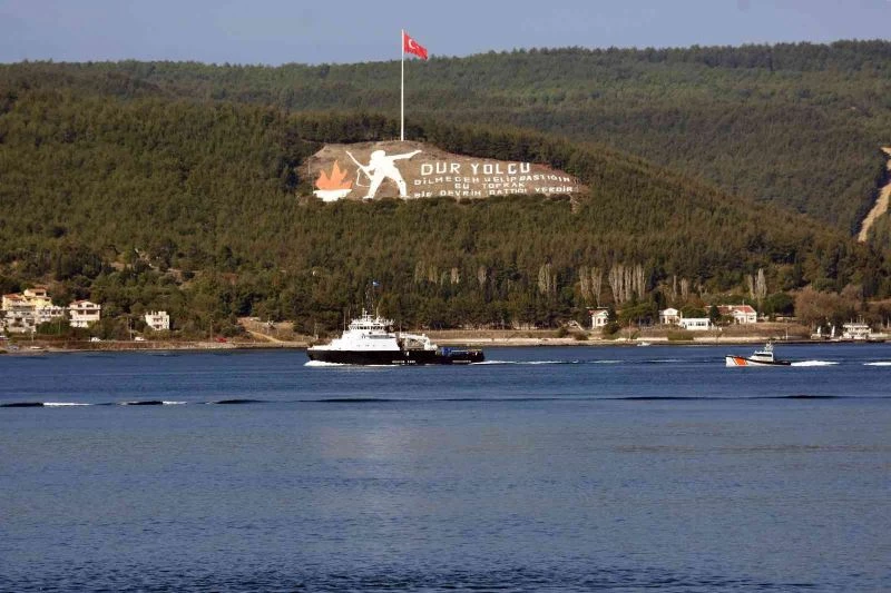 Marmara Denizi’nden bugün saat 09.15’te Çanakkale Boğazı’na giriş yapan Rus Donanması’na bağlı ’SB-739’ borda numaralı askeri römorkör, Nara Burnu’nu döndükten sonra saat 11.15 sıralarında Çanakkale önlerine vardı. ’Dur Yolcu’ sembolü ve Kilitbahir Kalesi önünden geçen Rus askeri römorkörü, Ege Denizi’ne doğru yol aldı.