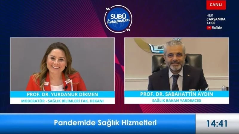 Sakarya Uygulamalı Bilimler Üniversitesi (SUBÜ) tarafından düzenlenen "SUBÜ Konuşmaları" programının 4. konuşmacısı ‘Pandemide Sağlık Hizmetleri’ başlıklı söyleşiyle Sağlık Bakan Yardımcısı Prof. Dr. Sabahattin Aydın oldu. Üniversitenin ‘SUBÜ Haber’ üzerinden canlı yayınlanan programın moderatörlüğünü SUBÜ Sağlık Bilimleri Fakültesi Dekanı Prof. Dr. Yurdanur Dikmen gerçekleştirdi. Söyleşide Türkiye’nin pandemi sürecinde izlediği yol haritası, filyasyon ekiplerinin önemi, yerli aşı çalışmaları ve aşılama programı konuşuldu.