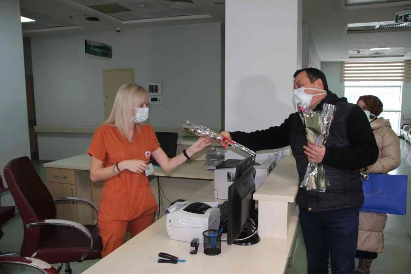 DÜZCE – Düzce’de hasta yakınları, son günlerde sağlık çalışanlarına yönelik şiddete tepki göstermek için anlamlı bir etkinlik düzenledi. Bir araya gelen hasta yakınları, görevi başındaki sağlık çalışanlarına karanfil hediye etti.
