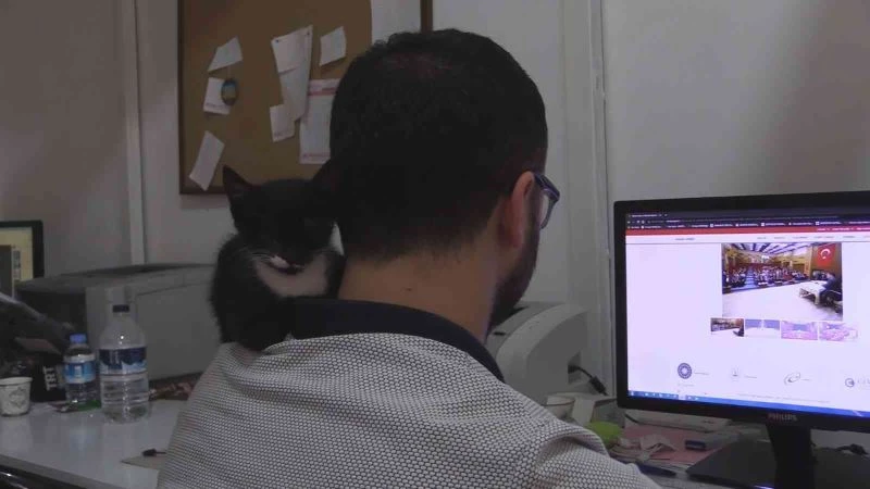 Sevimli kedinin ofislerinin maskotu haline geldiğini anlatan Atıcı, “Herkesin sokaktaki kedileri sahiplenmelerini istiyoruz” diye konuştu.