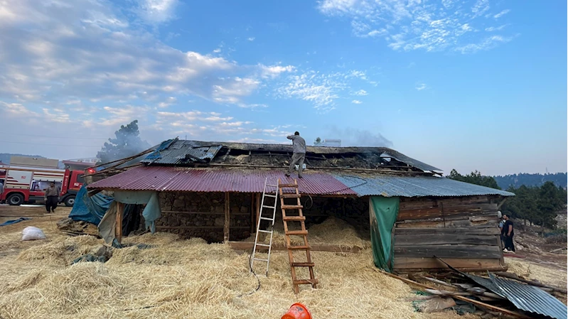 Ekiplerin müdahalesiyle söndürülen yangında samanlıkta hasar oluştu.