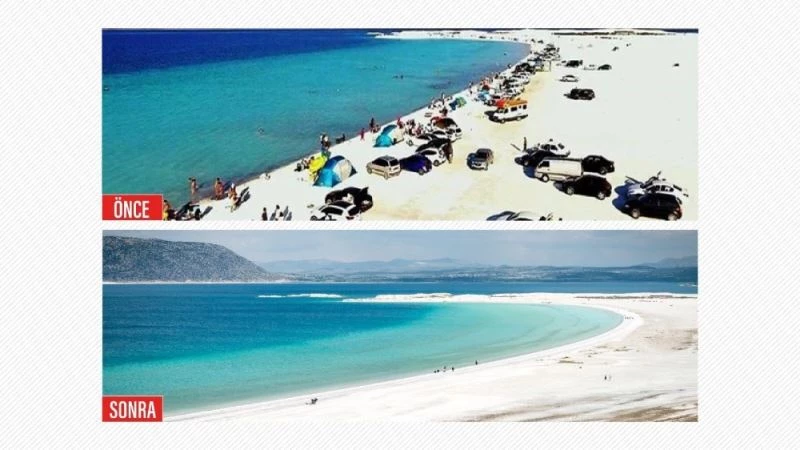 Çevre ve Şehircilik Bakanlığı ise Salda Gölünde uygulanan tedbirleri gösteren görselleri yayımlayarak Salda’nın öncesi ve sonrası belgelerini paylaştı.