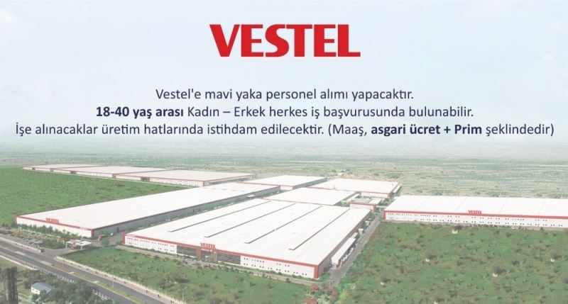 Vestel İnsan Kaynakları Koordinatörlüğünden yapılan açıklamada, “Vestel A.Ş. bünyesinde Manisa’da üretim bantlarında çalıştırılmak üzere 18-40 yaş aralığında kadın/erkek mavi yaka personel alımı yapılacaktır” denilerek Salihli Belediyesinden iş arayanlara duyurulması için destek istendi. İş başvurularının http:/isbasvuru.vestelkariyer.com/maviyaka adresinden yapılacağı bildirildi.