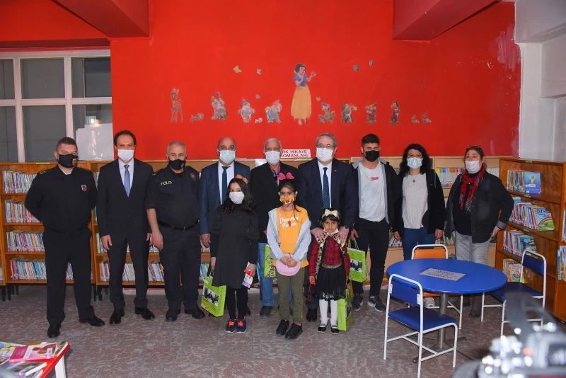 Programda ayrıca kütüphane girişinde ve çocuk bölümünde açılan ve yeni kitaplardan oluşan sergi de gezildi.