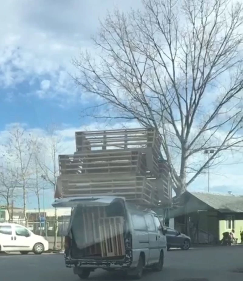 Mahmudiye Mahallesi Mobilya Sanayi Sitesinde seyir halinde olan kapalı kasa panelvanın üzerine ahşap iskeletler yüklendi. Üzerinde iskelet yüklü aracı seyir halinde gören sürücüler şaşkınlık yaşadı. Bazı sürücüler ise o anları cep telefonu kamerasıyla kayıt altına aldı. Görüntülerde, seyir halinde olan aracın üzerinde yüklü olan iskeletlerin sallandığı görüldü.