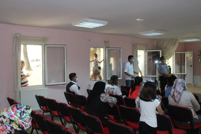 Korona virüs tedbirleri kapsamında bir süre kapalı olan ve açıldıktan sonra misafir kabul edilmeyen nikah salonları için yasak kalkınca, misafirler sosyal mesafe ve tedbirlere uygulanarak yerlerini aldı. Kontenjan sebebiyle salona giremeyen vatandaşlar ise pencerelerden nikah takip etti.