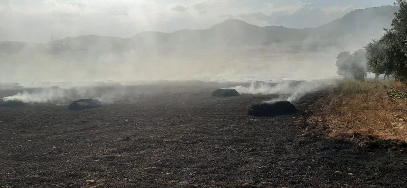 Adıyaman’da, bir arazi içerisinde bulunan saman balyaları çıkan anız yangınında küle döndü.