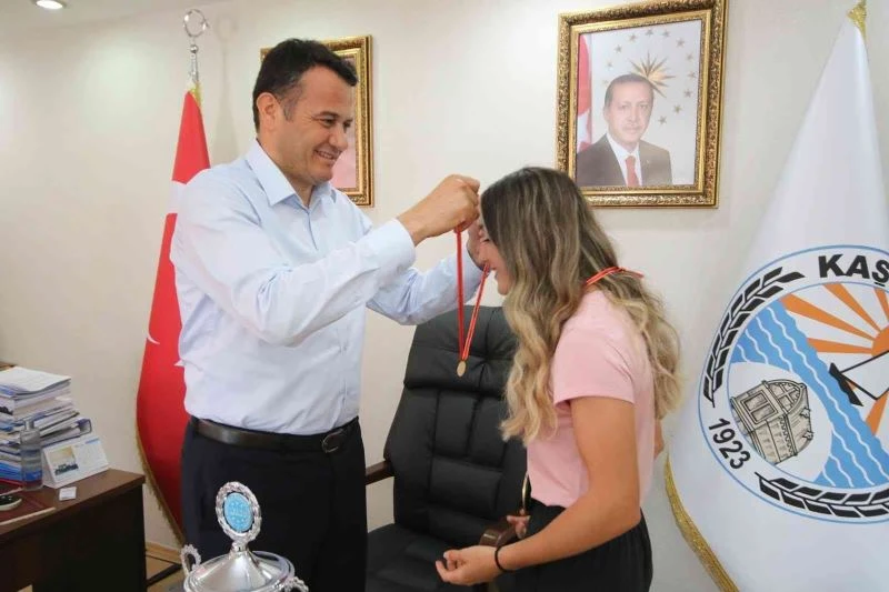 İstanbul’da gerçekleşen Kick Boks Dünya Kupası’nda şampiyon olan sporcu Zehra Doğan, Kaş Belediye Başkanı Mutlu Ulutaş tarafından altınla ödüllendirdi.