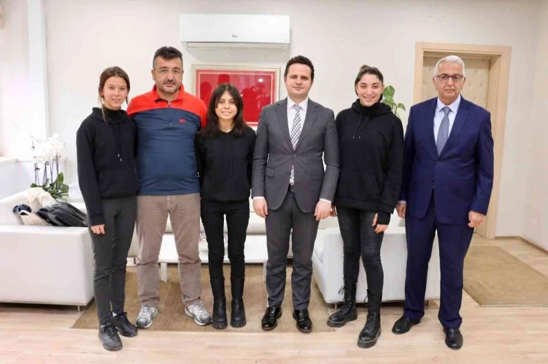 Türkiye Şampiyonu ve Gençler Avrupa Şampiyonu Milli okçular Hazal Burun, Minikler Türkiye Şampiyonu Meltem Yaka ve Ceyda Kömür, Yatağan İlçe Milli Eğitim Müdürü Osman Alemdar ve antrenörleri Dr. Ejder Sözen eşliğinde İl Milli Eğitim Müdürü Emre Çay’ı ziyaret etti.