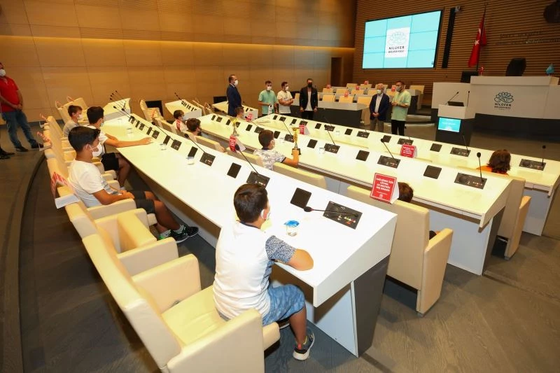 Nilüfer Belediyespor Sercan Yıldırım Futbol Akademi kurucusu Sercan Yıldırım ve minik şampiyonlar, Nilüfer Belediye Başkanı Turgay Erdem’i ziyaret ederek şampiyonluk sevincini paylaştı. Halk Evi’ndeki Nilüfer Barış Meclisi’nde gerçekleşen ziyarette Başkan Turgay Erdem, sporcuları başarılarından dolayı kutladı. Başkan Erdem, “Akademide alacağınız eğitimlerle birlikte çok daha iyi yerlere geleceğinizi umuyorum. Sadece futbola değil, sporun diğer branşlarına da ilgi duyun. Başarınızdan dolayı sizi kutluyorum” dedi.