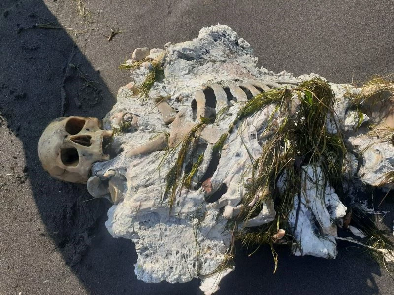 Samsun’da sahilde yürüyüş yapan insanlar tarafından kıyıya vurmuş insan iskeleti bulundu.