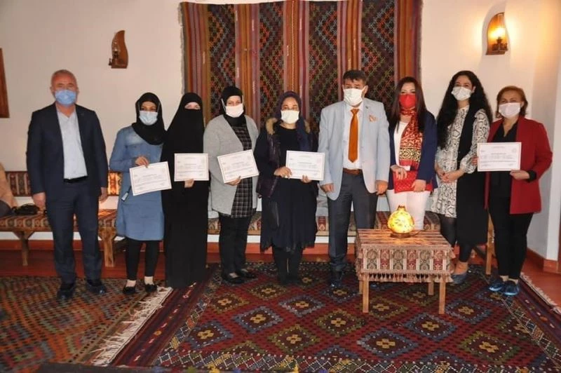 Afyonkarahisar Valiliği tarafından hayata geçirilen Kadın Kültür Evleri projesi kapsamında Sandıklı’da açılan kabak işlemeciliği kursunda eğitim gören kadınlar belgelerini aldı.