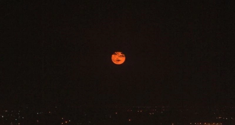 Şanlıurfa’da kızıldan altın sarısına dönen ay hayran bıraktı
