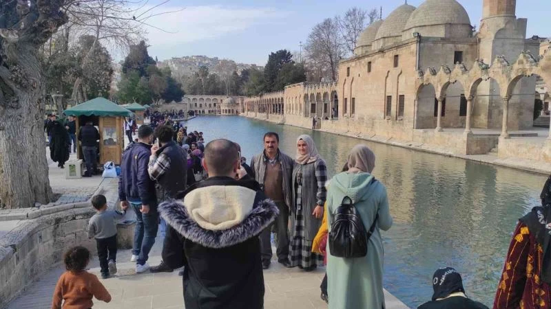 Şanlıurfa’da güneşi fırsat bilen vatandaşlar, Balıklıgöl yerleşkesini gezerek güzel havanın tadını çıkardı.
