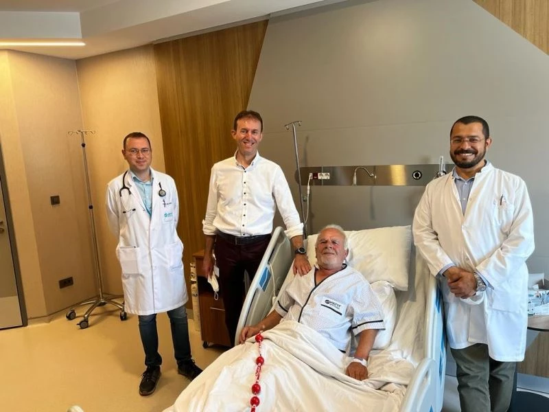 “Hastamız 2016’dan bu yana abdominal aort anevrizması ve hipertansiyon nedeniyle hastanemiz izleminde olan bir hastaydı. Anevrizma çapı 5 santimetrenin altında izlenirken son 2 yıl pandemi nedeniyle kontrole gelmemiş. İlaçlarının düzenlenmesi aksamış, sigara içmeye devam etmiş. Hasta geçtiğimiz günlerde ani tansiyon yüksekliği nedeniyle acil servisimize başvurunca yapılan tetkiklerde karın içi aort damarındaki anevrizma çapı 7.3 cm olarak saptandı. Opr. Dr. Kadir Çeviker ve Opr. Dr. Barış Kemahlı ile birlikte hastamızı değerlendirdik, EVAR (endovasküler aort replasmanı) işlemine karar verdik. Sigara içen bir hastanın açık yöntemle karın damarına yönelik ameliyat riski yüksektir, biz de damarı kapalı yöntemle tamir ettik. Karnı açmadan iki kasıktan atardamar yoluyla girerek anevrizmalı damarını yapay damar ile değiştirdik. Hasta bir gün sonra şifayla taburcu oldu."