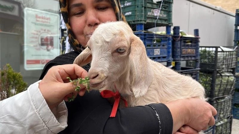 Keçisinin bir ay önce doğurduğu oğlaklarından birine bakamadığını belirten Akın, "Oğlağı ölmemesi için ellerimle besledim, süt ve ot verdim. Bir ayın sonunda sağlığına kavuştu. Allah'a çok şükür ölmedi, yaşıyor. 'Şanslı' ile arkadaş olduk, gündüzleri sürekli birlikteyiz, ben ona o da bana alıştı." diye konuştu.