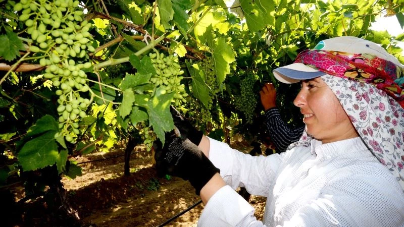 Sarıgöl’de üzüm salkımları standart olsun diye makyaj çalışması