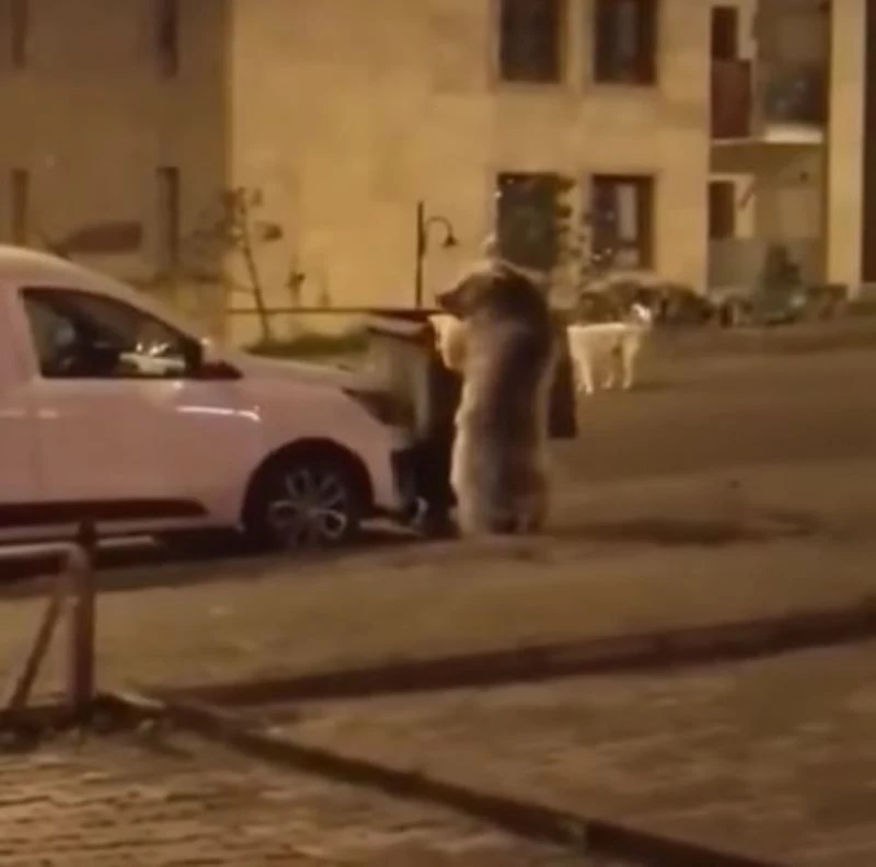 Kars’ın boz ayılarıyla ünlü Sarıkamış ilçesinde vatandaşlara ve sokak köpeklerine aldırış etmeden sokaklarda dolaşan ayılar, çöp konteynırlarını devirerek içerisinde yiyecek arıyor.