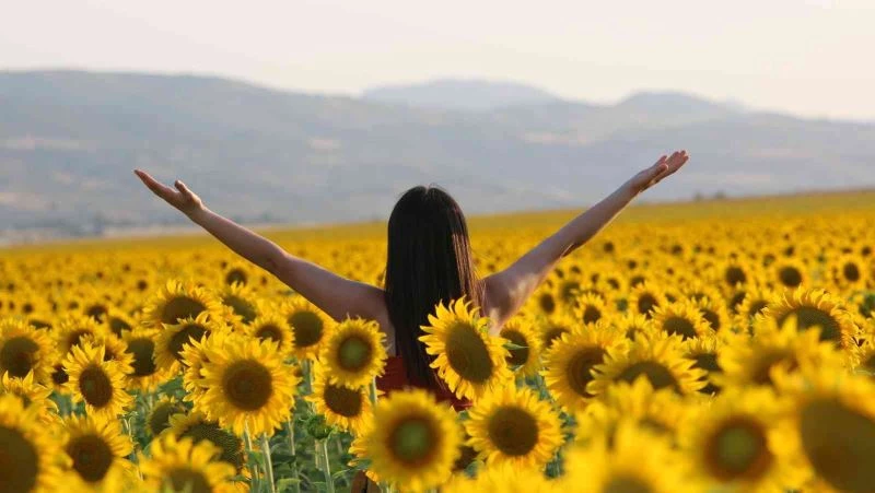 Sarıya boyanan ayçiçeği tarlaları hasat için gün sayıyor