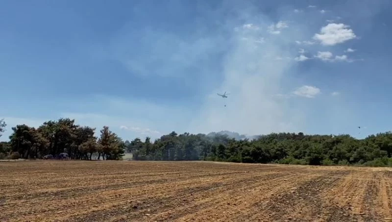 Edirne’nin Keşan ilçesine bağlı Sazlıdere köyü ve Çanakalle’nin Gelibolu ilçesine bağlı Adilhan köyü arasında bugün saat 12.30 sıralarında henüz bilinmeyen bir sebeple yangın çıktı.