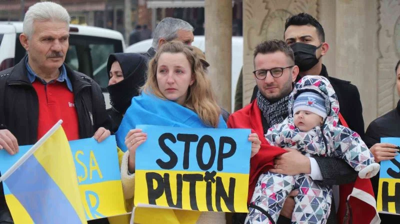 Denizli’de çoğunluğu kadınlardan oluşan Ukraynalılar, Bayramyeri Meydanı’nda Rusya’ya dur demek için bir araya geldi. ‘Savaşa hayır’ pankartları açarak slogan atan Ukraynalılar, ardından İstiklal Marşı’nı ve Ukrayna Milli Marşı’nı okuyarak, masum insanların kanının akmamasını istedi. Zaman zaman duygusal anlar yaşayan Ukraynalılar, konuşmakta güçlük çekti.