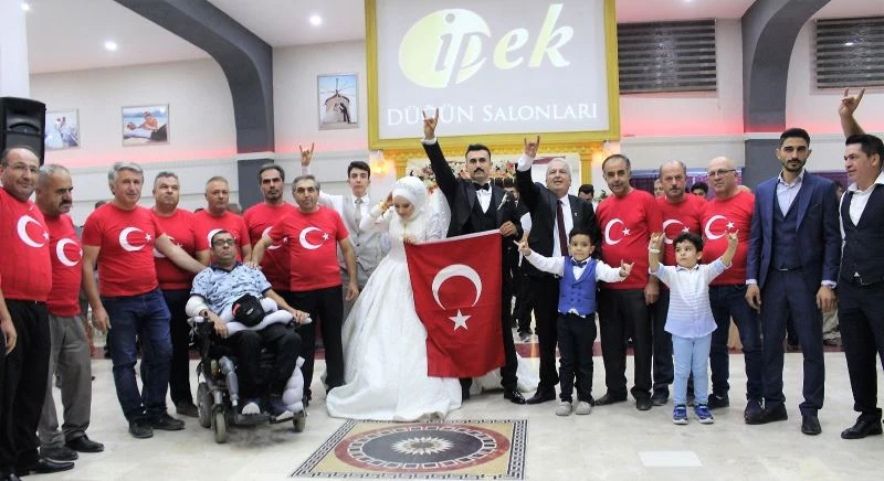 Şehidin silah arkadaşlarından Aydın Selçuk ise, “Asker arkadaşımızın ağabeyini, düğününde yalnız bırakmak istemedik. Mutlu gününde yanında olabildiğimiz için biz de gururluyuz” ifadelerini kullandı.